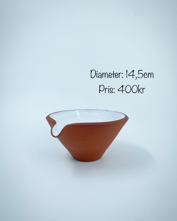 Small spillkum in red earthenware, white blue spotted glazed inside.